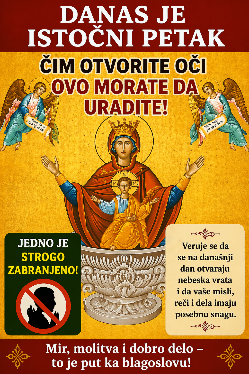 - Danas, dok prolazimo kroz današnje svakodnevne obaveze, važno je da se podsetimo tih malih, ali značajnih trenutaka koji nas povezuju sa onim što nas čini celokupnim ljudima. Tradicije poput Svetlog petka podsećaju nas da postoji mnogo toga što nas čini bogatijim i što nam pomaže da živimo u skladu sa sobom i prirodom. Zato je ovaj praznik više od običaja – on je podsećanje na snagu duhovnog nasleđa, na snagu ljubavi, međusobnog poštovanja i bliskosti koja se ne ogleda samo u velikim stvarima, već i u malim ritualima koji čine da se osećamo povezano sa onim što je zaista važno.