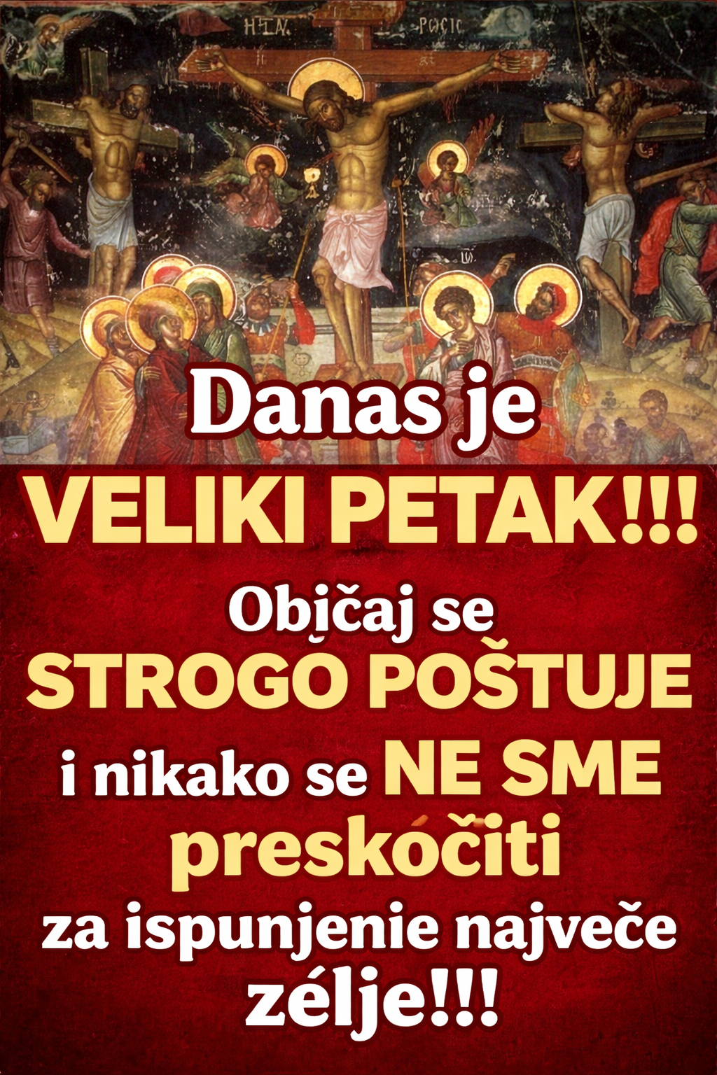 Veliki petak spada u dane kada se vernici podsećaju na najvažniji trenutak u hrišćanskoj veri – stradanje Isusa Hrista.