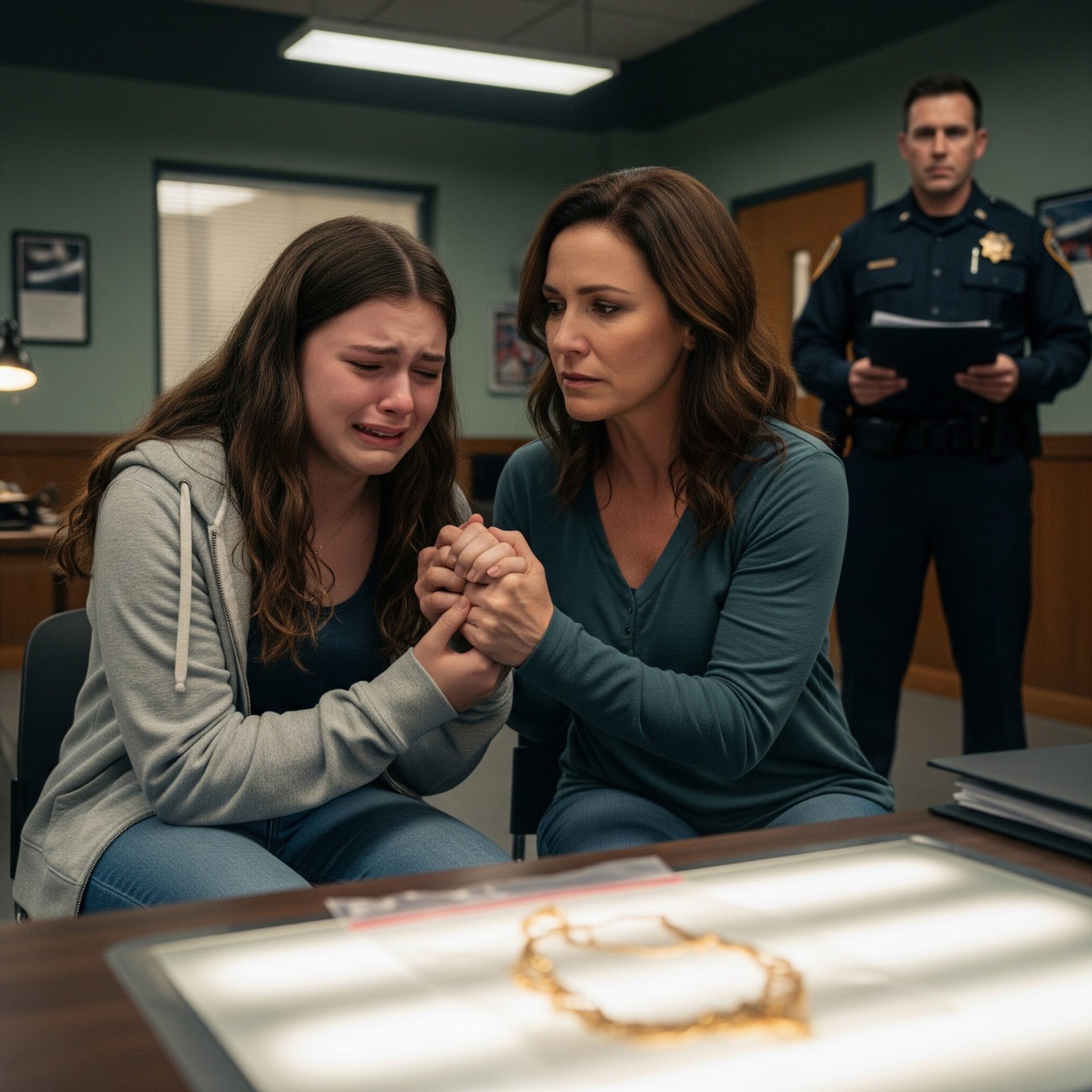 Kada je stigla u policijsku stanicu, ugledala je Emily uplakanu, dok je na njenoj torbi ležala ogrlica – dokaz koji je mogao da uništi njen život. Policajac je tvrdio da postoje svjedoci i to najbliži – djed i baka. Otac je dao izjavu, majka hladno klimala glavom, a djevojčica je kroz suze ponavljala: „Nisam to uradila, mama, kunem se.“