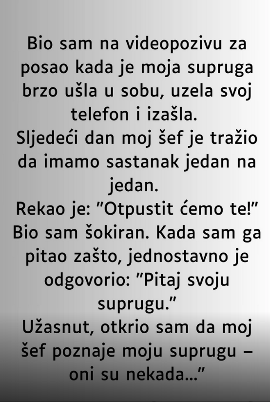 Danas ćemo pisati o ispovijesti jednog čovjeka kojem je tokom video poziva sa šefom ušla žena u sobu. Šta se nakon toga dogodilo pročitajte u nastavku.