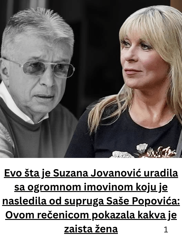 Danas ćemo pisati na temu nasljeđa, tačnije o Suzani Jovanovič koja je ostala bez svog supruga Saše Popovića. Ona je nakon njegove smrti nalijedila veliku imovinu kao što je svima poznato.
