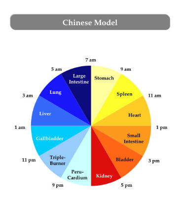 Tradicionalna kineska medicina (TCM) već tisućljećima koristi koncept unutarnjeg sata tijela kako bi objasnila kako protok energije utječe na pravilno funkcioniranje pojedinih organa. Umjesto da se fokusira samo na anatomske ili kemijske procese, kineska medicina vjeruje da je tijelo mreža meridijana, nevidljivih energetskih puteva kroz koje teče životna energija, poznata kao chi ili qi. Ova energija teče kroz tijelo u specifičnom vremenskom periodu, a svaki organ ima svoj najaktivniji trenutak tijekom dana.