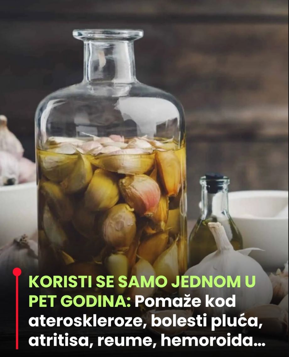 Zgnječeni bijeli luk se stavlja u čistu staklenku, preliće se alkoholom i dobro zatvori. Teglu treba čuvati na tamnom i hladnom mjestu 10 dana, bez ikakvog potresanja. Tokom ovog perioda, alkohol izvlači aktivne supstance iz bijelog luka, stvarajući gusti i aromatični ekstrakt. - Cijeđenje i odležavanje