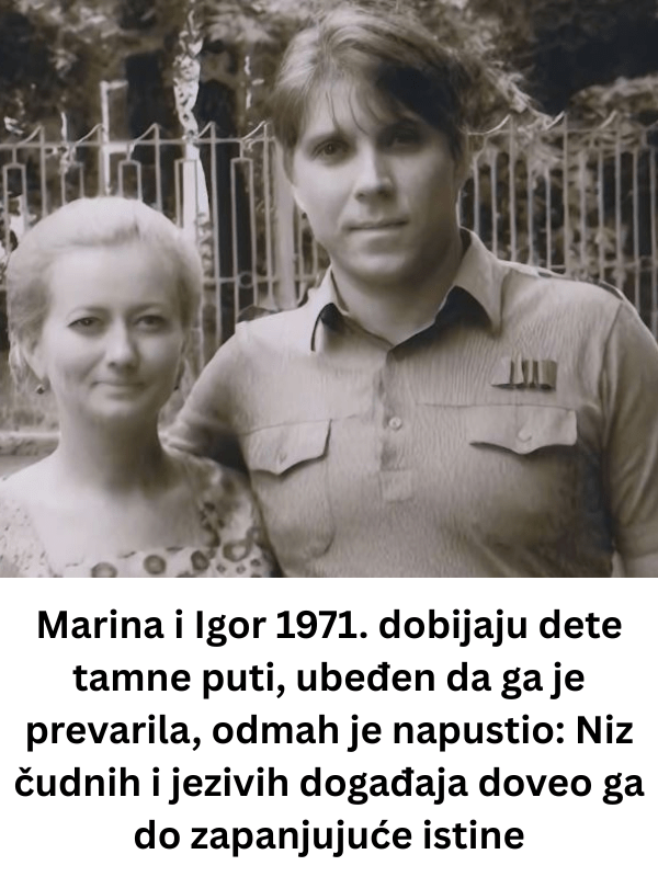 Igor i Marina su živjeli u skladnom braku, radovali se dolasku svog prvog djeteta. Njihovi snovi o obitelji bili su ispunjeni ljubavlju i nadom. No, trenutak koji je trebao biti najljepši u njihovim životima pretvorio se u pravi šok. Marina je 1971. godine rodila dijete koje nije ličilo na njih. Beba je bila tamne puti, što je odmah izazvalo sumnje u Igora. Njegova ljubomora i bijes bili su toliko snažni da je napustio kuću, uvjeren da ga je supruga izdala.
