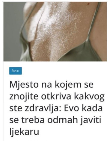 Danas ćemo pisati na temu zdravlja, tačnije o tome šta govore o vašem zdravlju mjesta na kojima se znojite. Kada je potrebno da se javite ljekaru možete da pročitate u nastavku.