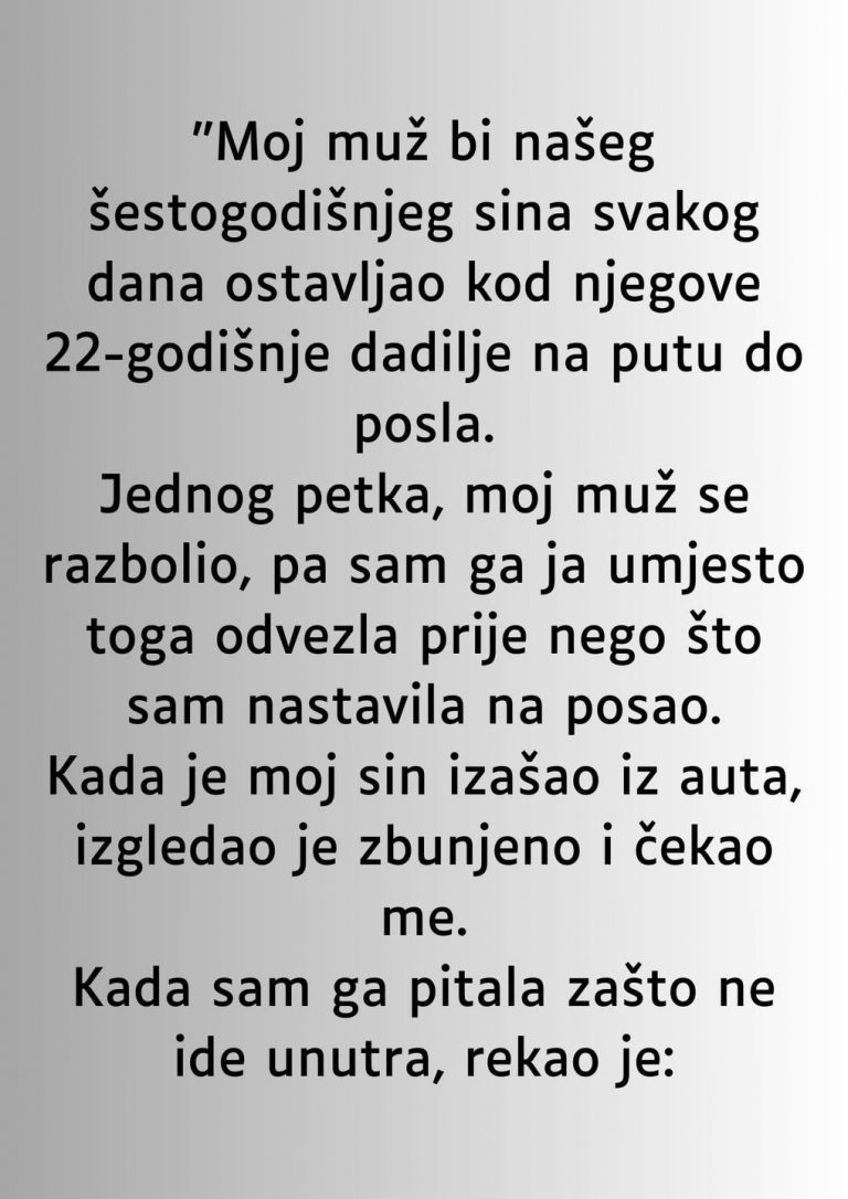 • Ovaj trenutak je samo jedan od mnogih koji se dešavaju u porodicama, ali on je posebno značajan jer otkriva duboku emocionalnu dinamiku koja se krije ispod svakodnevne rutine. Majka je shvatila da su možda njeni najbliži članovi porodice bili u potpunosti posvećeni svojim svakodnevnim obavezama, ali nikada nisu postavljali pitanja o tome šta njihov sin zaista oseća i kako doživljava te promene. U tom trenutku, žena je počela da preispituje svoj odnos sa mužem i da se pita da li su stvari koje se čine normalnim zapravo bile ispravne. Možda nisu ni shvatili da se između njih stvorila tišina koja je pretila da uguši njihove međusobne odnose.