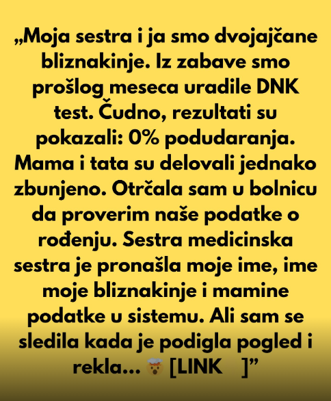 Danas ćemo pisati o zanimljivoj ispovijesti koja govori o dvije sestre blizankinje. One su jednom prilikom iz dosade odlučile uraditi DNK test, a rezultati nisu bili ono što su očekivale.