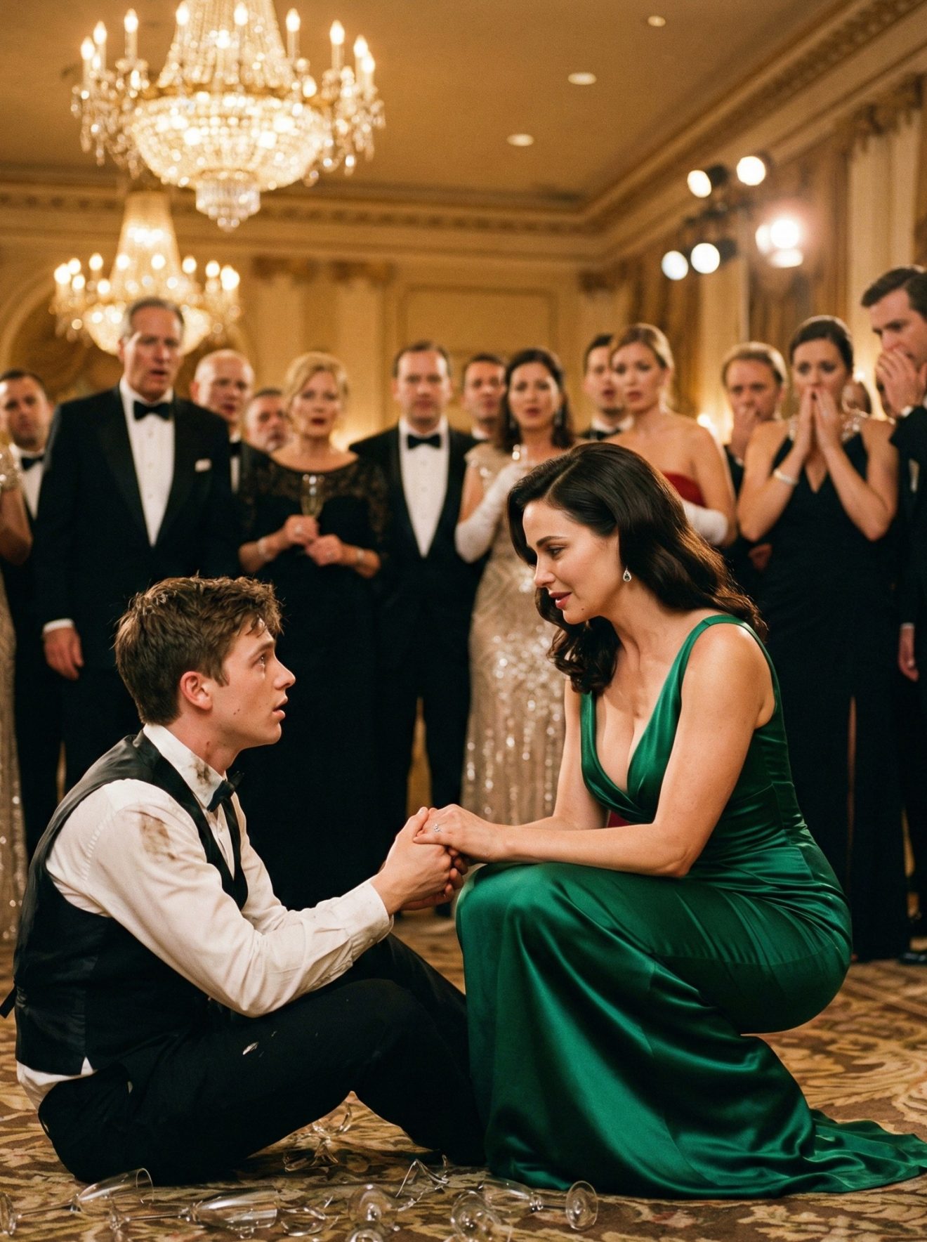 Jedne večeri, tokom gala večere u luksuznom hotelu „Royal Plaza“, Elena je stajala u centru pažnje. Nosila je prelepu smaragdno zelenu haljinu, ali dok je svi gledali, njen muž Ivan nije obraćao pažnju na nju. On je bio zauzet razmišljanjem o poslovnim prilikama i odnosima. Dok je Elena sedila sama za stolom, čekajući da je primeti, Ivan je bio potpuno odsutan. U tom trenutku dogodio se incident sa konobarom. Mladi konobar je nesrećno prosuo šampanjac na skupoceno odelo jednog bankara, što je izazvalo bes u njegovim očima. Svi su stajali i gledali, ali samo je Elena reagovala. Ignorišući poglede drugih, prišla je mladiću, pomogla mu da ustane i obrisala mu ranu. To je bio jednostavan, ali duboko ljudski postupak.