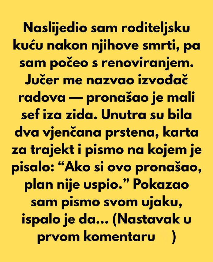 Dok je zatvarao sef, osjećao je mir. Kao da je ispunio nečiju posljednju želju – ne da obnovi kuću, nego da upamti priču. Jer mnogi od nas ne nasljeđuju samo zidove, nego i tihe, važne lekcije.