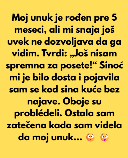 Kada je žena saznala da njen unuk, kojeg je jedva čekala da vidi i voli, zapravo nije biološki njen, osjetila je duboku povredu i izdaju. U njenoj glavi su se pojavili mnogi nemiri: kako je to moguće? Zašto joj sin nije rekao? Onda su uslijedile još teže riječi – obitelj je odlučila držati je podalje, ne samo od unuka, već i od činjenica koje su se mogle promijeniti zauvijek.