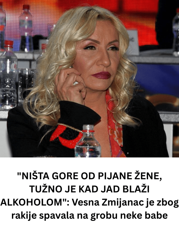Vesna Zmijanac je poznata pjevačica koja je u svoje vrijeme bila prava zvijezda širom Balkana. Imala je buran život te je imala mnogo problema povezanih sa alkoholom.