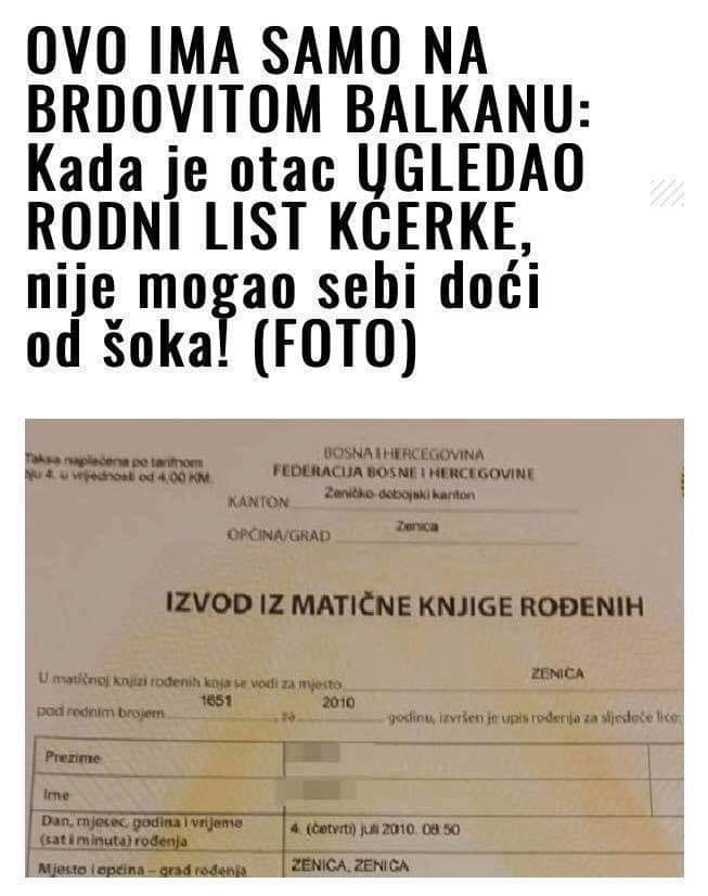 Danas ćemo pisati o zanimljivoj situaciji koja se dogodila u našoj regiji. U pitanju je rodni list koji je ostavio bez teksta jednog čovjeka. O čemu se tačno radi pročitjte u nastavku.