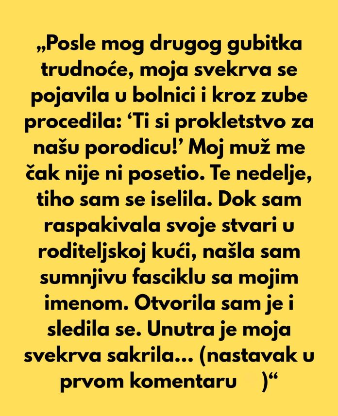 Nakon gubitka druge trudnoće, život glavne junakinje doživeo je nepopravljiv udarac. Dok su svi oko nje šutjeli, uključujući njenog muža, koji je odlučio da je ne poseti u bolnici, svekrva je bila ta koja je konačno progovorila. „Ti si prokletstvo za našu porodicu“, izgovorila je te riječi kroz zube, a tišina koja je uslijedila bila je gora od svih napada. Iako su takvi trenuci mogli slomiti svakog, ona je bila odlučna da ne poklekne. Spakovala je svoje stvari i otišla se skloniti kod svojih roditelja, ne znajući da će tamo otkriti nevjerojatnu istinu koja će joj promeniti život.