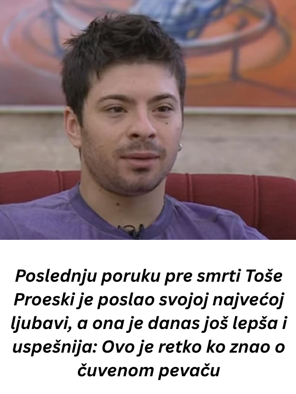 Poslednji trenuci Toše Proeskog ostali su duboko urezani u sećanjima svih koji su ga poznavali. Pre tragične nesreće koja mu je oduzela život, Toše je gostovao u emisiji “Vrteleška” i govorio o tome kako mu je postalo teško da podnese pritisak slave. “Želim u šetnju, u kupovinu, uveče u kafić, ali ne mogu”, rekao je tada. Njegove reči, koje su zvučale kao predskazanje, odjekivale su javnošću. Ubrzo nakon emisije, na putu ka Zagrebu, njegov život tragično je okončan. Smrt pevača potresla je ne samo njegove najbliže, već i ceo Balkan, koji je tugovao za osobom čiji je glas bio sinonim za iskrenost i ljubav prema životu.