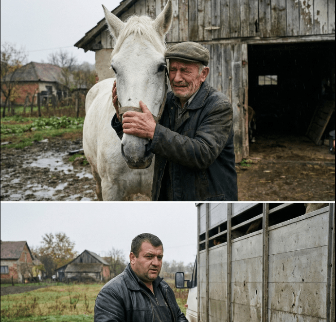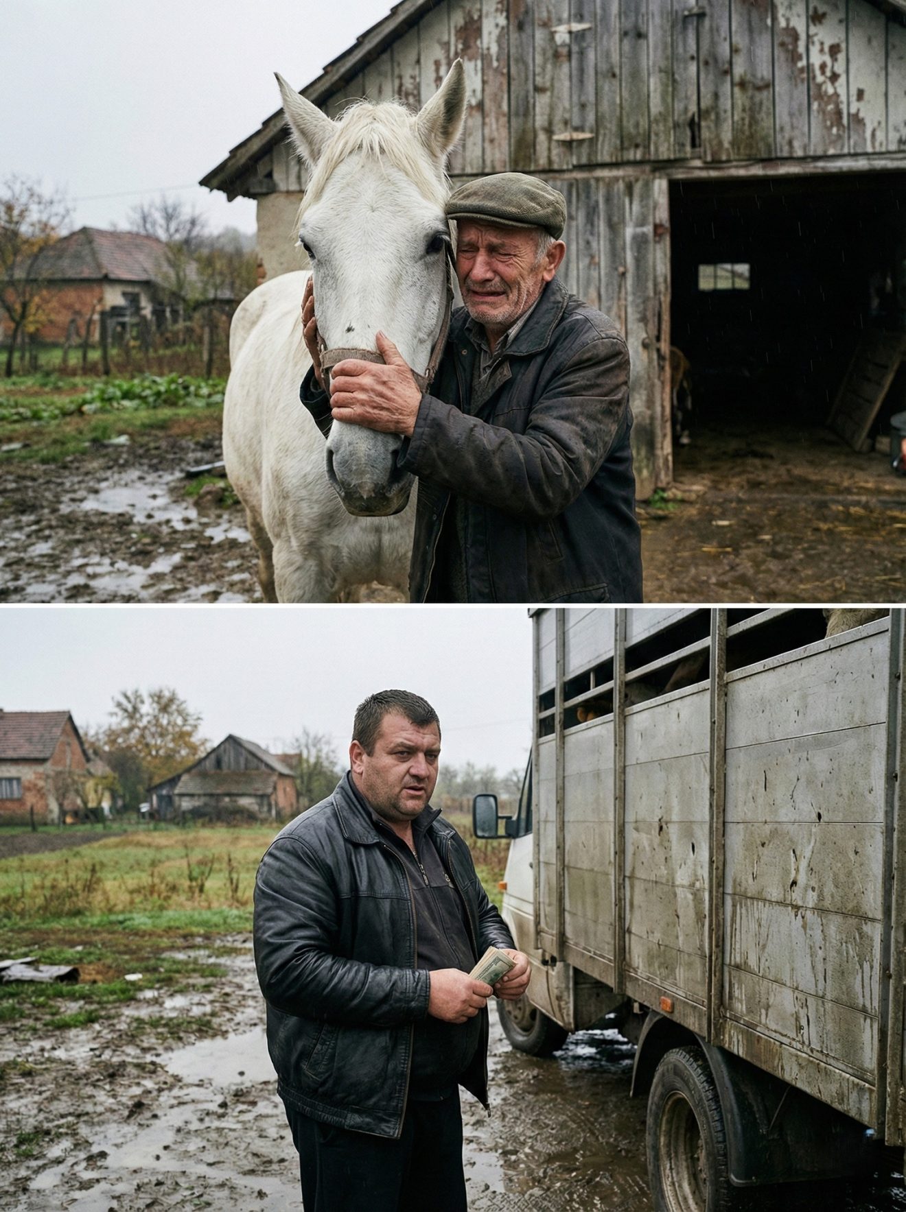 Kada je kamion stigao, zajedno sa čovekom grube spoljašnjosti, Stanoje je drhtao. Taj čovek nije video Sokola kao živog bića, već samo kao teret. Novac je bačen u blato, a reči koje su usledile bile su hladne i bezosećajne. Stanoje nije video pare, vidio je kraj jednog života – život koji je živeo sa Sokolem. Zagrlio je konja, šaptao mu oproštaj, i srce mu je bilo slomljeno.