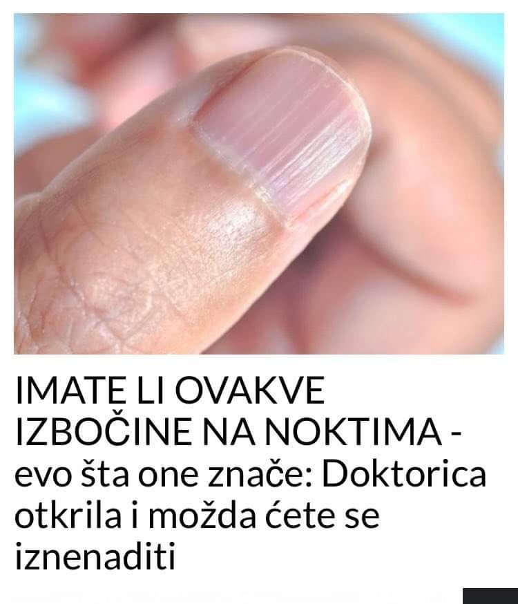 - Za mnoge ljude, nokti su često zanemareni, ali oni mogu biti dragocjeni pokazatelj unutrašnjeg stanja tijela. Ako primijetite nagle promjene na noktima, kao što su duboke izbočine, promjene boje, krhkost ili pucanje, preporučuje se posjetiti dermatologa ili liječnika opće prakse. Rano prepoznavanje ovih simptoma može biti ključno za pravovremeno liječenje mogućih zdravstvenih problema. Nokti nam mogu otkriti mnogo više o našem zdravlju nego što mislimo, pa je važno da ih ne zanemarujemo.