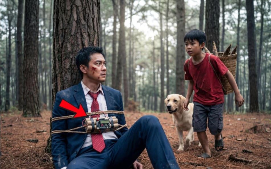 Razmaknuvši granje, ugledao je prizor koji nijedno dijete ne bi smjelo vidjeti. Odrasli muškarac bio je vezan za stablo, izmučen, iscrpljen i na rubu svijesti. Uže mu se duboko urezalo u tijelo, a pogled je bio mutan, bez nade. Uz njega se nalazio mali uređaj, djelomično prekriven lišćem, čija je svrha bila zastrašujuće jasna.