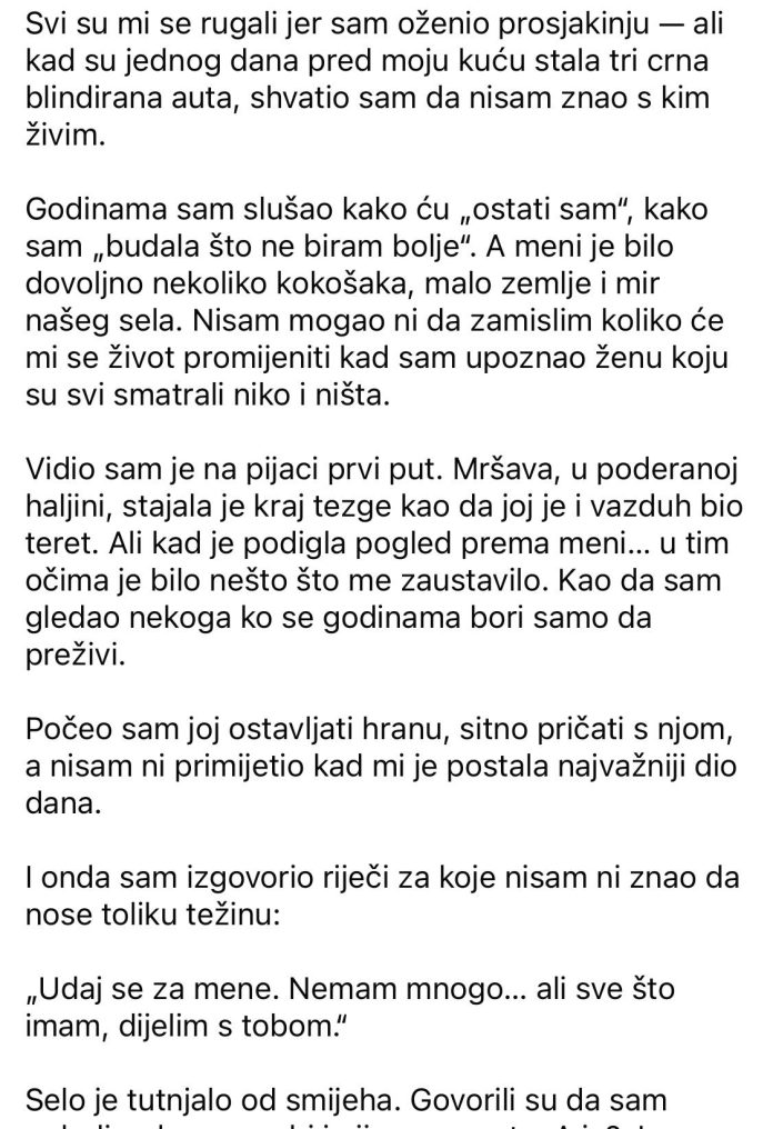 I tako, priča koja je počela na prašnjavoj pijaci, završila je kao podsjetnik da život ne pita koga ćemo sresti ni kada će nas sudbina iznenaditi. Ponekad nas najveće bogatstvo pronađe onda kada mu se najmanje nadamo.