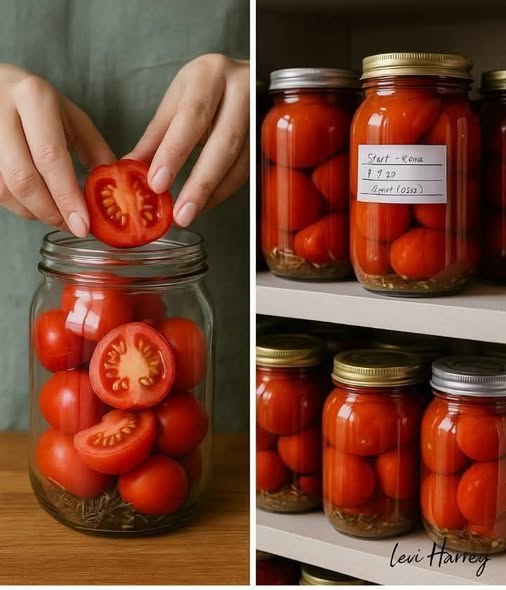 - Prvo dodajte limunov sok, a zatim pažljivo složite rajčice u staklenku, ostavljajući oko 1,5 cm prostora na vrhu. Ovaj prostor omogućava stvaranje vakuma prilikom kuhanja.