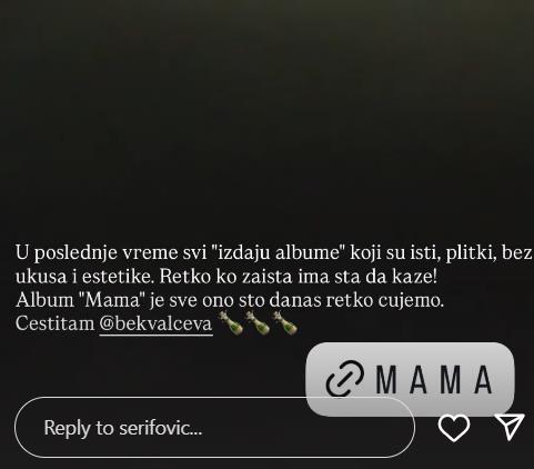 Pevačica Marija Šerifović nedavno je podelila svoja zapažanja o stanju na muzičkoj sceni, izazvavši veliku pažnju na društvenim mrežama. U svom postu na Instagramu, istakla je da je ponuda albuma u poslednje vreme često površna i bez dublje umetničke vrednosti. Smatra da mnogi izvođači često izdaju slične, plitke albume koji ne donose ništa novo i nemaju pravi umetnički smisao. Marija je naglasila da je teško pronaći muzičare koji zaista imaju nešto značajno da kažu kroz svoju muziku, te smatra da je trenutna scena ispunjena radovima koji nisu dovoljno duboki.