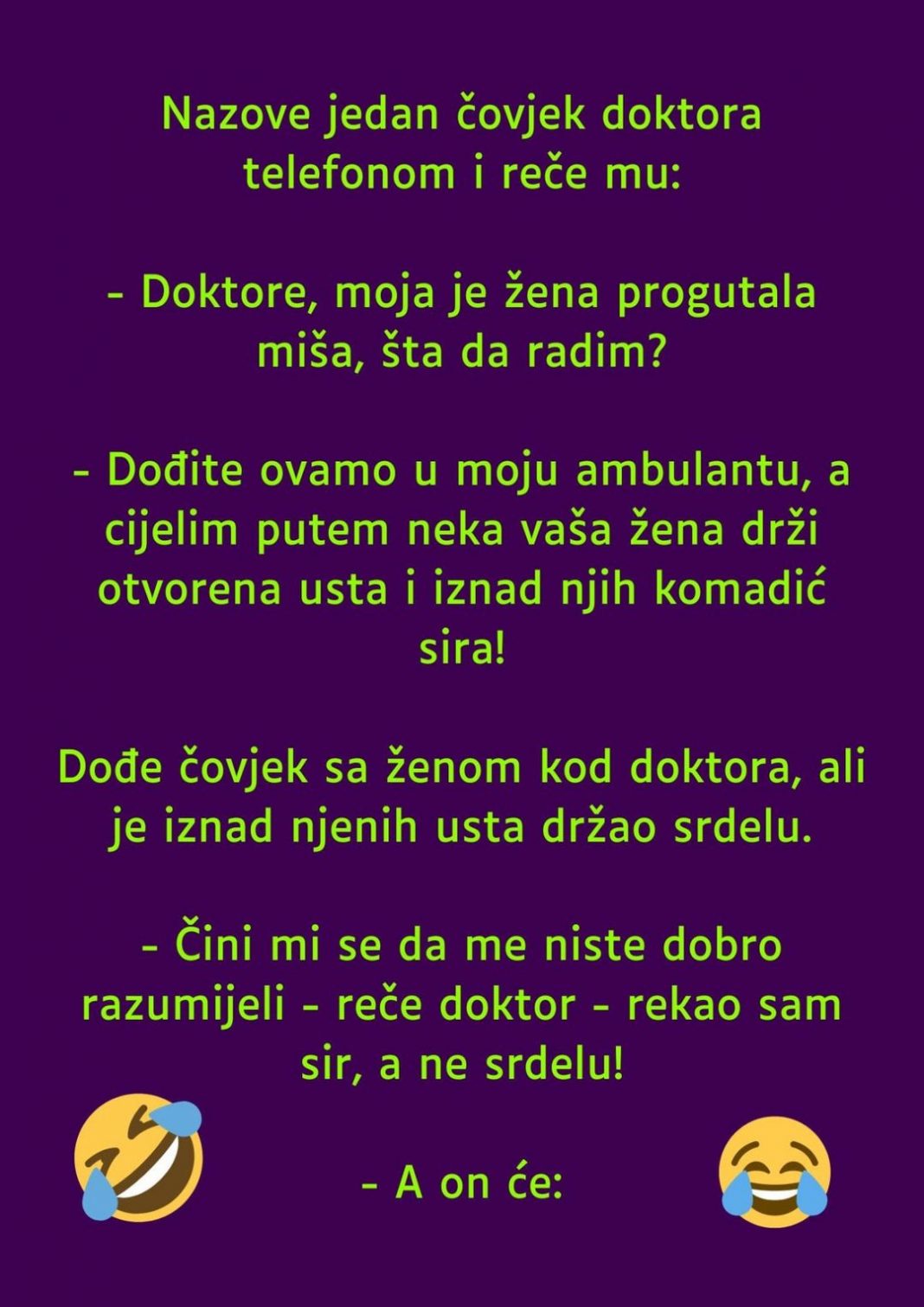Danas smo se odlučili skloniti od crnih vijesti i tema te pisati o sjajnom vicu za kojeg smo sigurni da će vas nasmijati. Pročitajte u nastavku članka o kojem je vicu riječ.