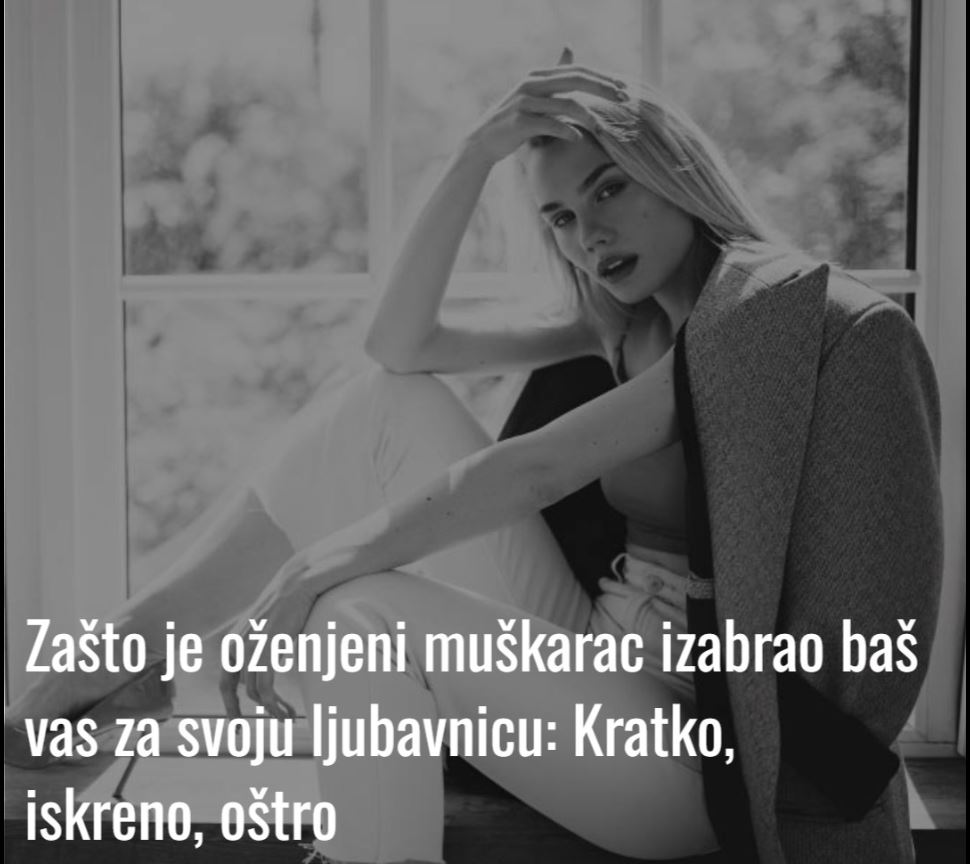 Ovo je možda najgrublja stvar koju možete čuti, ali istina je da mnogi od njih biraju žene koje neće stvoriti probleme u njihovom životu. Oni ne žele situacije u kojima bi morali objašnjavati ili otkrivati tajne svojoj ženi, pa stoga odabiru ženu koja će šutjeti, koja neće praviti dramu i koja neće previše zahtijevati. To je gotovo kao hladna kalkulacija u kojoj je ona, ljubavnica, samo privremeno rješenje.