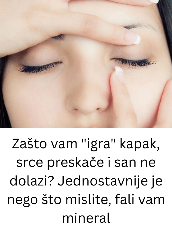 Ukoliko ste ikada doživjeli da vam igra kapak, ili srce preskače, a pored toga ne možete stupiti u san, onda ste na pravom mjestu. Vjerovatno je u pitanju nedostatak jednog minerala, a o čemu se radi pročitajte u nastavku.